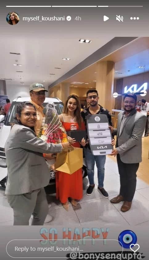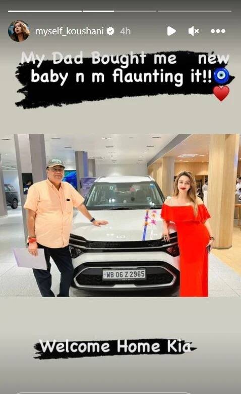 বনির সঙ্গে আগামী বছর বিয়ের কথা কৌশানীর বাবাই তাঁর জন্মদিনে ঘোষণা করেছিলেন। এর মাঝেই কৌশানীকে উপহার দিয়েছেন তাঁর বাবা। বিলাসবহুল একটা গাড়ি মেয়েকে জন্মদিনে গিফট করলেন তিনি। আর ইনস্টাগ্রাম স্টোরিতে সেই ছবি শেয়ার করে ক্যাপশনে কৌশানী লেখেন, ‘আমার বাবা আমাকে একটা বেবি কিনে দিয়েছেন। আমি সেটাই দেখাচ্ছি’।