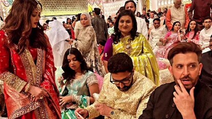যদিও ঐশ্বর্যা সপ্রতিভ। আশীর্বাদের সন্ধ্যায়ও হেসে হাত নাড়লেন সবার উদ্দেশে। পরনে জমকালো গাউন। উপরে কালোর উপর বেগুনি পাড়ের রোব। ঐতিহ্যবাহী মাং টিকা ছিল তাঁর কপালে। পাশে আবিরের মতো স্নিগ্ধ আরাধ্যা। মা মেয়ের সুন্দর বন্ধন দেখেও মুগ্ধ হন অনুরাগীরা। যদিও ঘুরেফিরে ক্যামেরায় চলে আসেন বচ্চন পরিবারের বাকিরা। নাতনির সঙ্গে স্ত্রীর সঙ্গে পোজ দিয়ে চলেছেন অমিতাভ। একবারও কথা বললেন না পুত্রবধূর সঙ্গে। পরিবারের মাঝে হঠাৎ যেন চিড় ধরে গিয়েছে। যা আর আড়ালে থাকল না। যদিও অনন্ত-রাধিকার বিয়ের দিনের একটি ভাইরাল হয়েছে। তাতে স্বামী অভিষেকের সঙ্গে কথা বলতে দেখা গিয়েছে ঐশ্বর্যাকে। ফ্রেমে রয়েছেন হৃত্বিক রোশনও। অভিষেক আর হৃত্বিক পাশাপাশি বসে। লাল লেহেঙ্গায় ঐশ্বর্যা দাঁড়িয়ে গম্ভীর ভাবে কিছু বলছেন অভিষেককে। সেই ছবি ঘিরেও শুরু হয়েছে জল্পনা।