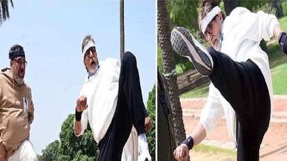 # মুম্বই: কিছু মানুষ এভারগ্রিন... বয়স শুধু ক্যালেন্ডারেই বাড়ে! আদপেই তাঁরা বুড়ো হন না! এই যেমন আশি ছুঁইছুঁই তরুণ যুবক অমিতাভ বচ্চন! তাঁর এনার্জির কাছে হার মানতে বাধ্য তরুণ তুর্কিরা! সম্প্রতি সোশ্যাল মিডিয়ায় ভাইরাল হল বলিউডের অবিসাংবাদিত সম্রাটের এমন কিছু স্টান্ট-এর ছবি, যা দেখে নেটিজেনদের মুখ হাঁ! এমনও কেউ পারেন? তাও এই বয়সে!