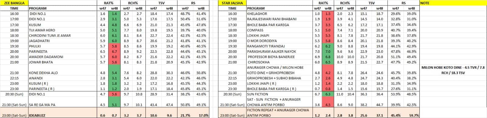 বেঙ্গল টপার হওয়ার দৌঁড়ে জোর টক্কর শুরু হয়েছে জি বাংলা এবং স্টার জলসাতে। হাড্ডাহাড্ডি লড়াইয়ে কে এগিয়ে যাবে আর কে পিছিয়ে তা জানতে সকলেই মুখিয়ে রয়েছেন। টক্করে কে সেরা দশে থাকবে আর কে হবে সেরার সেরা, তা জানার জন্য মুখিয়ে রয়েছেন দর্শকরা। একনজরে দেখে নিন চলতি সপ্তাহের টিআরপি-র তালিকা।