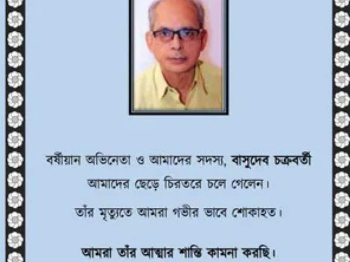 বাংলা বিনোদন জগতে দুঃসংবাদ। প্রয়াত চরিত্রাভিনেতা বাসুদেব চক্রবর্তী। ১৬ ডিসেম্বর আর্টিস্ট ফোরামের তরফে একটি বিবৃতির মাধ্যমে জানানো হয় সেই খবর। বিবৃতিতে লেখা হয়েছে, ‘বর্ষীয়ান অভিনেতা ও আমাদের সদস্য বাসুদেব চক্রবর্তী আমাদের ছেড়ে চিরতরে চলে গেলেন। তাঁর মৃত্যুতে আমরা গভীরভাবে শোকাহত। আমরা তাঁর আত্মার শান্তি কামনা করছি।’
