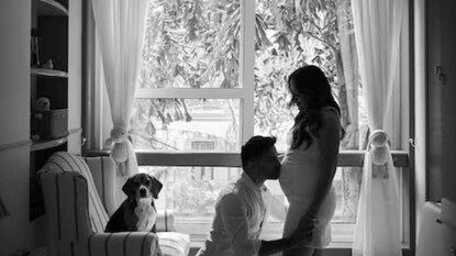 ইনস্টাগ্রাম হ্যান্ডেলে বরুণ তাঁদের বসার ঘর থেকে একটি মনোক্রোম ছবি শেয়ার করেছেন। দেখা যাচ্ছে, বরুণ হাঁটু গেড়ে বসে, নাতাশা দালালের বেবি বাম্পে চুম্বন করছেন। অন্যদিকে সোফায় তাঁদের আর এক ‘সন্তান’ পোষ্য কুকুরটিও পোজ দিয়েছে।