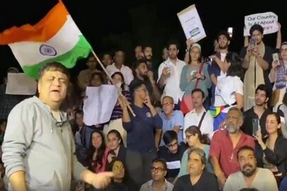 #মুম্বই: রাত বাড়তে লাগল ৷ তবুও থামল না প্রতিবাদ ৷ গেটওয়ে অফ ইন্ডিয়ার সামনে একজোট হয়ে জেএনইউ কাণ্ডে সরব হলেন একদল পড়ুয়া, সাধারণ মানুষ৷ প্রতিবাদে গর্জে উঠলেন বলিউড পরিচালক অনুরাগ কাশ্যপ, বিশাল ভরদ্বাজ, অনুভব সিনহা, জোয়া আখতার, রীমা কাগতি, তাপসী পন্নু ! গান গানইলেন জনপ্রিয় গীতিকার স্বনন্দ কিরকিরে ৷