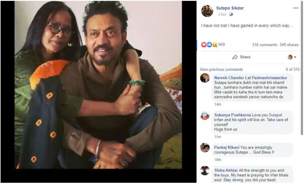 ' আমি হারাইনি, যেভাবেই হোক পেয়েছি-ই', ইরফানকে শ্রদ্ধাজ্ঞাপন স্ত্রী সুতপার