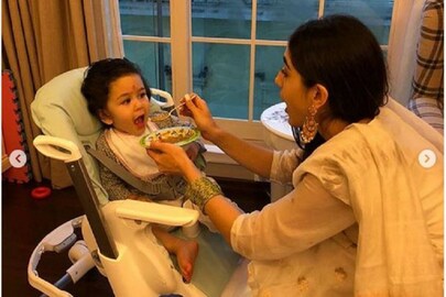 তৈমুরের জন্মদিনে সারার মিষ্টি উপহার ! নিজে হাতে তৈমুরকে খাইয়ে দিচ্ছেন সারা