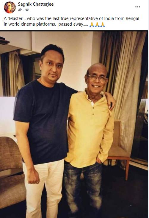 বুদ্ধদেব দাশগুপ্ত ছিলেন আন্তর্জাতিক মঞ্চে বাংলা থেকে ভারতের যথার্থ প্রতিনিধি ৷ ফেসবুকে লিখেছেন জাতীয় পুরস্কারজয়ী পরিচালক সাগ্নিক চট্টোপাধ্যায় ৷ শেয়ার করেছেন প্রয়াত বুদ্ধদেবের সঙ্গে তাঁর নিজের একটি ছবি ৷