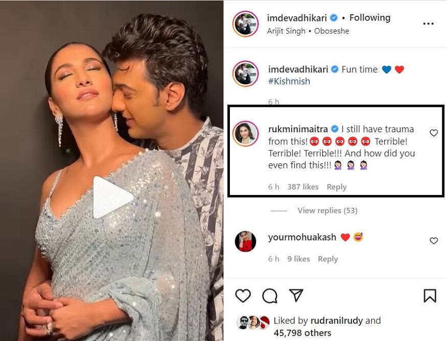 তবে এখানেই শেষ নয়। এই পোস্টে কমেন্ট করেন রুক্মিণীও। তিনি লেখেন, " আমি এখনও এই ট্রমা থেকে বেরোতে পারিনি। ভয়ানক, ভয়ানক, ভয়ানক। কোথা থেকে খুঁজে পাও তুমি এসব।" এই ভিডিও শেয়ার হতেই ভালোবাসায় ভরিয়েছেন দেব ভক্তরা। হুহু করে ভাইরাল ভিডিও।