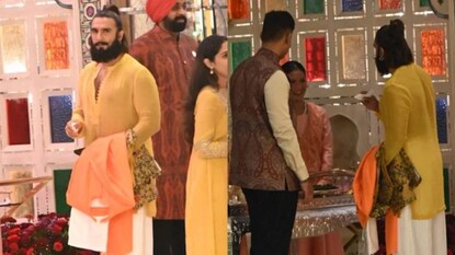 Anant Ambani-Radhika Merchant Wedding: অনন্ত- রাধিকার গায়ে হলুদের অনুষ্ঠানে চাঁদের হাট বসেছে৷ সোমবার মুম্বইতে আম্বানির বাসভবনে অনুষ্ঠিত হল অনন্ত আম্বানি এবং রাধিকা মার্চেন্টের হলদি সেরেমনি৷ গায়ে হলুদের অনুষ্ঠানে পান খেয়ে নজর কাড়লেন বলিউড অভিনেতা রণবীর সিং৷