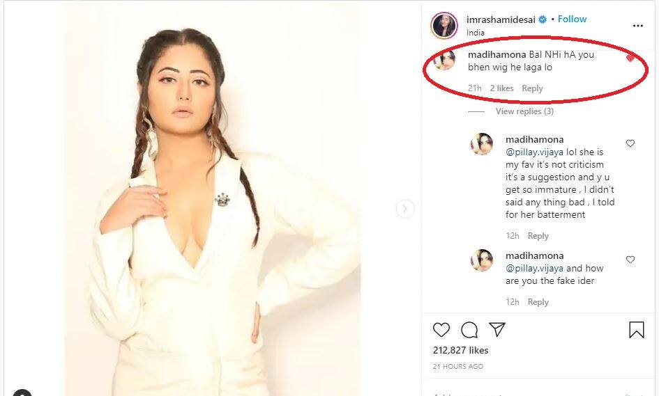 ছবিতে রশ্মিকে কম চুলের জন্য খোঁটা দেওয়া হয়েছে৷ তাঁকে মাথায় বড় উইগ ব্যবহার করার পরামর্শ দেওয়া হয়েছে৷ এরপরেই সরগরম তাঁর ইনস্টাগ্রাম প্রোফাইল ৷