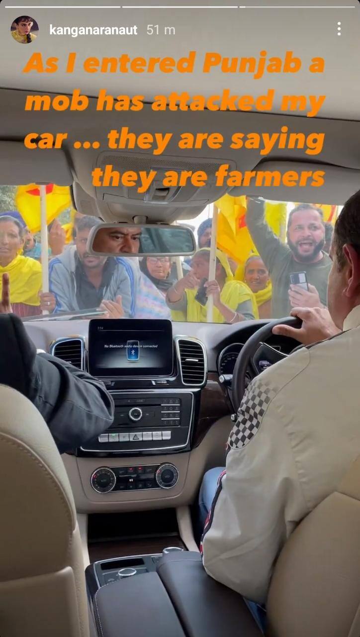 #মুম্বই: বেজায় চটে কঙ্গনা রানাওয়াত (Kangana Ranaut)! অভিযোগ, তাঁর গাড়িতে আক্রমণ করা হয়েছে (Kangana Ranaut's car attacked)! ইনস্টাগ্রাম স্টোরিতে একটি ভিডিও শেয়ার করে মনিকার্ণিকা স্টার লেখেন, '' যেই আমি পঞ্জাবে ঢুকি, একদল লোক আমার গাড়িতে আক্রমণ করে! বলছিল ওঁরা চাষি!''(Kangana Ranaut's car attacked)