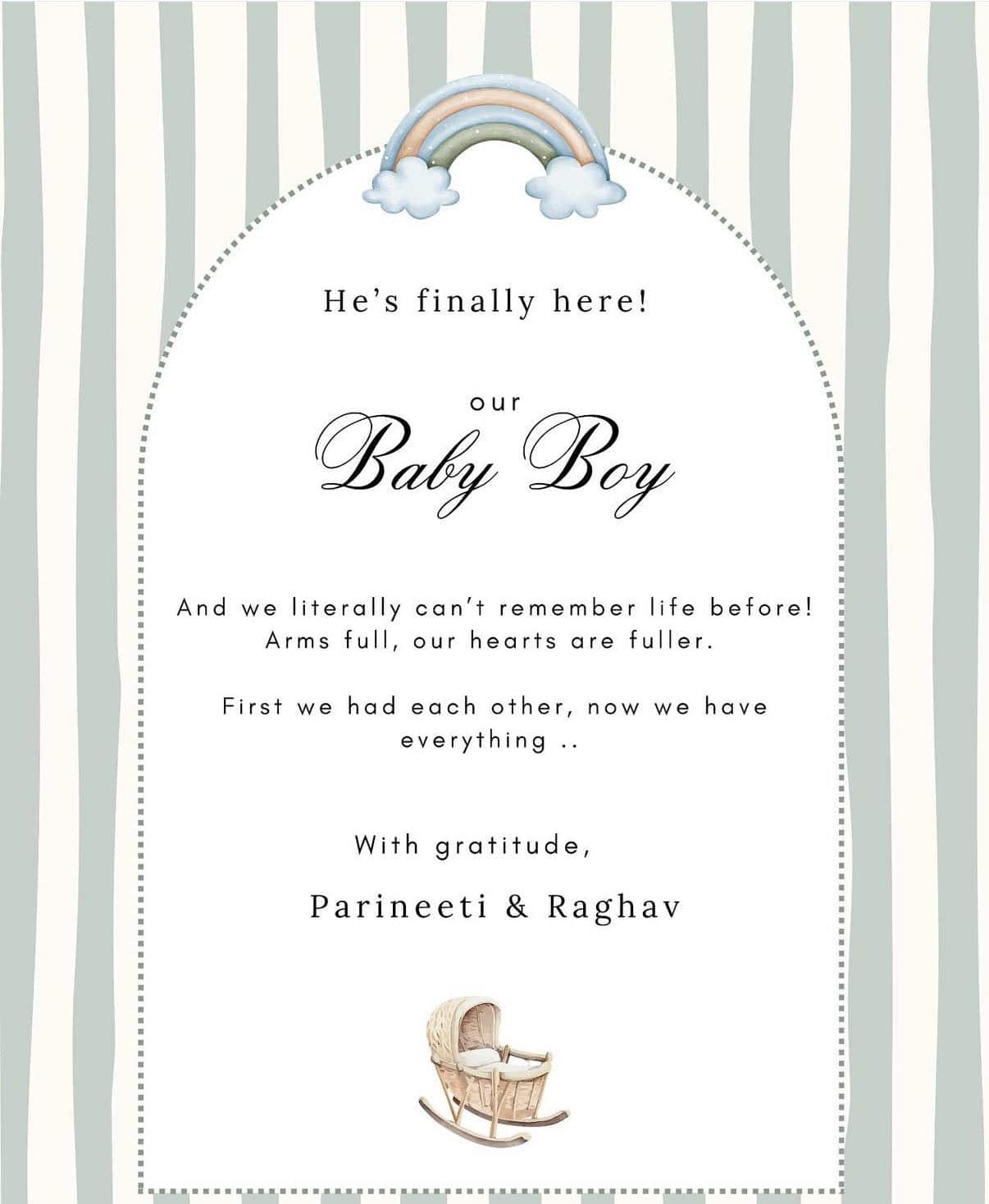 পরিণীতি ও রাঘব তাঁদের প্রথম সন্তানের আগমনের খবর নিয়ে ভক্তদের মধ্যে আগে থেকেই আগ্রহ ছিল। অভিনেত্রীকে কয়েকদিন আগেই দিল্লির হাসপাতালে ভর্তি করা হয়। সেখানেই, চিকিৎসকদের তত্ত্বাবধানে, শনিবার রাতে তিনি সন্তানের জন্ম দেন।