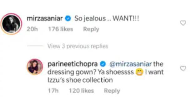 পরিণীতির জুতোর সম্ভার (Parineeti Chopra’s collection of shoes) দেখে মন্তব্য না করে থাকতে পারেননি সানিয়া মির্জা (Sania Mirza) ৷ পরিণীতির প্রিয় বান্ধবী টেনিসতারকা মন্তব্যবাক্সে মজা করে লিখেছেন, তিনি জুতোর সংগ্রহ দেখে ঈর্ষাকাতর হয়ে পড়েছেন এবং তিনিও চান !