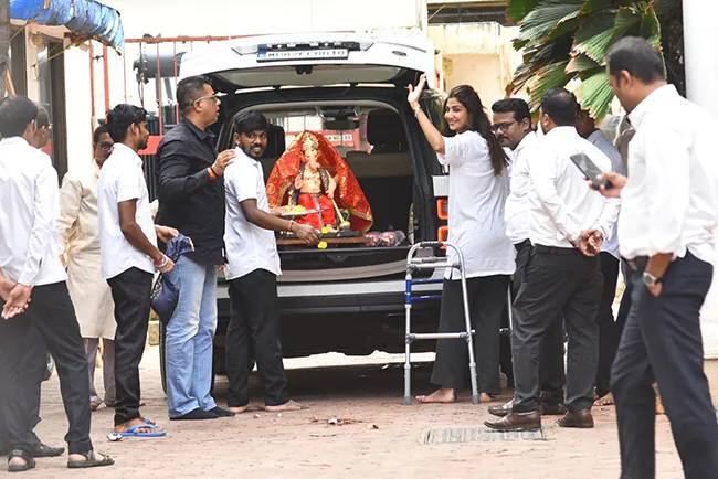 মুম্বই : শিল্পা শেট্টীর বাড়িতে গণপতি আরাধনা বলিউড ইন্ডাস্ট্রিতে বরাবরই সাড়ম্বর ৷ প্রতি বছরের মতো এ বারও নিজের বাড়িতে বিঘ্নেশকে অভ্যর্থনা জানিয়ে নিয়ে এলেন শিল্পা ও তাঁর স্বামী রাজ কুন্দ্রা ৷ সোমবারই বাড়িতে গণেশ বিগ্রহ আনতে রাজকে দেখা গিয়েছিল মুম্বইয়ের লালবাগে ৷ যদিও তাঁর সঙ্গে শিল্পা যেতে পারেননি ৷ কারণ রোহিত শেট্টীর আগামী ওয়েব সিরিজের শ্যুটিং করতে গিয়ে তাঁর পা ভেঙে গিয়েছে ৷