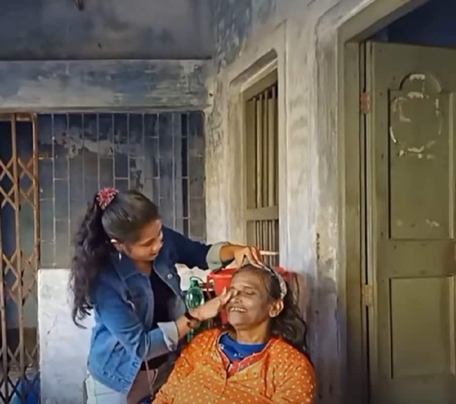 পাড়ার বিয়েতে যাবেন বলে রানুকে (Ranu Mandal's Viral Video)সাজিয়ে দিতে থাকেন তাঁরা। কালো মুখে মেক - আপ ঘষে ভূতের মতো সাদা করে দেন। আবার গোলাপি লিপস্টিক পরিয়ে দেওয়া হয় রানুকে। এই সাজ দেখলে মনে হয় রানু এর থেকে তাঁর স্বাভাবিক ছন্দ এবং পোশাকেই অনেক ভাল দেখতে। যদিও এই ভিডিও এখন ভাইরাল সোশ্যাল মিডিয়ায়।