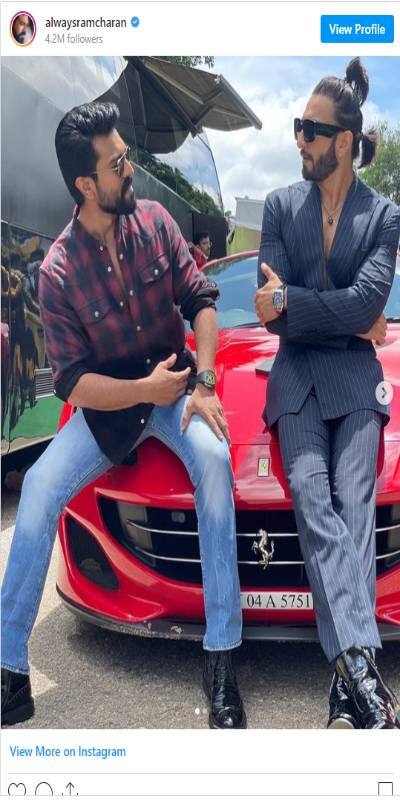 এই উপলক্ষে রণবীরের এক গুচ্ছ ছবি ভাইরাল নেটদুনিয়ায় ৷ একটি ছবিতে দেখা যাচ্ছে তিনি অভিনেতা রাম চরণের সঙ্গে কথা বলছেন ৷ অন্য একটি ছবিতে ‘পদ্মাবৎ’ তারকাকে দেখা গিয়েছে ছবির পরিচালক শঙ্কর এবং অন্যান্য কুশীলবদের সঙ্গে কথা বলতে ৷ রণবীর এবং রাম চরণ একটি ছবিতে আড্ডায় মগ্ন ৷ সেখানে তাঁদের সঙ্গে হাজির রামে চরণের বহুমূল্য বাহন ফেরারি-ও ৷ গাড়িটির দাম চার কোটি টাকা বলে শোনা গিয়েছে ৷ রণবীর নিজেও গাড়ির ব্যাপারে অত্যন্ত শৌখিন ৷ তাঁর সংগ্রহেও একাধিক দুর্মূল্য গাড়ি রয়েছে ৷