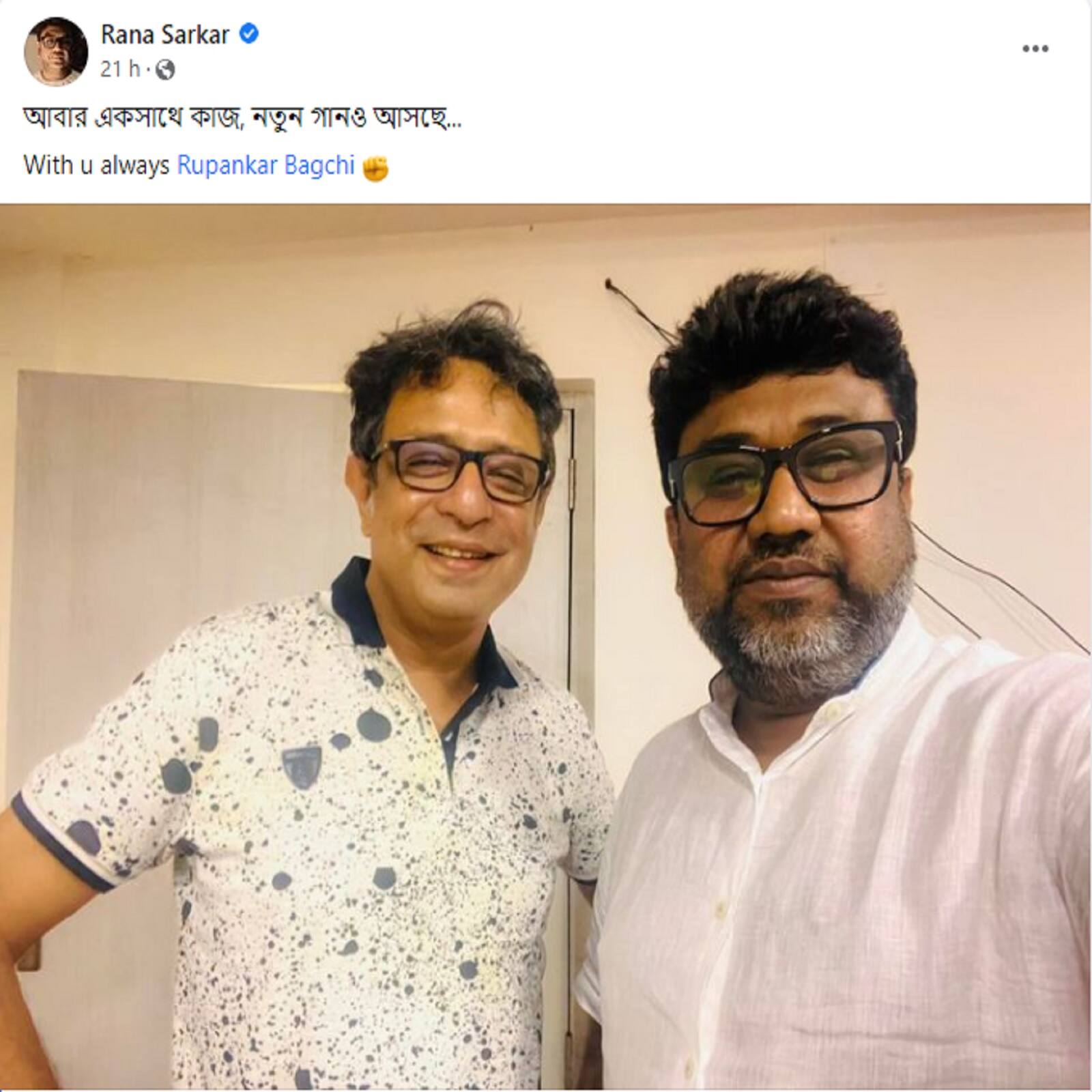 #কলকাতা: ফেসবুকে প্রযোজক রানা সরকারের সঙ্গে ছবি গায়ক রূপঙ্কর বাগচীর। উপলক্ষ আগেই জানা গিয়েছিল প্রযোজক মারফত। রাহুল বন্দ্যোপাধ্যায় পরিচালিত ছবিতে রূপঙ্করকে দিয়ে গান গাওয়াবেন রানা সরকার। কেকে বিতর্কের মাঝেই তিনি গায়কের পাশে দাঁড়িয়ে এমন প্রতিশ্রুতি দিয়েছিলেন। সদ্য সেই কথা রাখলেন রানা। বৈঠক সারলেন দু'জনে মিলে। শুধু ছবিতেই গান নয়৷ কয়েকটি গানের অ্যালবাম প্রযোজনা করার কথাও হয়েছে। নিউজ18 বাংলাকে সে কথা জানালেন খোদ গায়ক রূপঙ্কর। আধুনিক বাংলা গান, শ্যামাসঙ্গীত, রবীন্দ্রসঙ্গীত গাইবেন তিনি।
