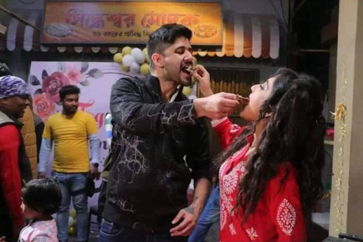 ছবিতে দেখা যাচ্ছে, একে অপরকে কেক খাইয়ে দিয়েছেন সৌমিতৃষা এবং আদৃত। দু'জনের মুখেই উজ্জ্বল হাসি। তাঁদের ঘিরে রয়েছেন ধারাবাহিকের কলাকুশলীরা।