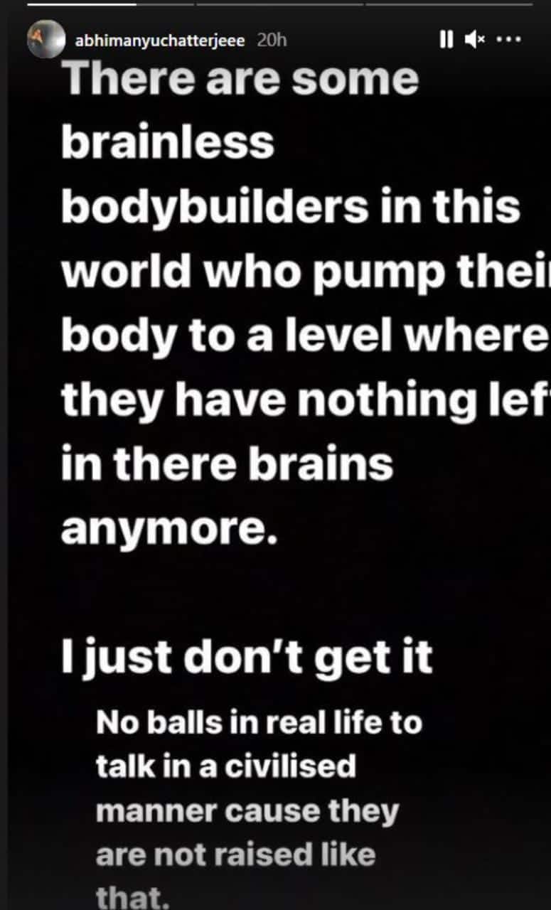 অভিমন্যুর পুরো বক্তব্যটাই যাঁরা জিম বা বডি বিল্ডিং করেন তাঁদের জন্য ৷ তিনি স্পষ্টই লিখেছেন, ‘কয়েকজন বডি বিল্ডার রয়েছেন, যাঁরা শরীরই শুধু ফুলেছে, মগজ একেবারে খালি ৷ তাঁরা জানেই না কীভাবে কথা বলতে হয়, কীভাবে ব্যবহার করতে হয় ৷ আসলে তাঁরা এভাবেই বড় হয়েছে !’