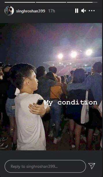 রোশনের ইনস্টাগ্রামের স্টোরিতে উঁকি মারলে দেখা গিয়েছে, তিনি একটি ছবি আপলোড করেছেন ৷ যেখানে একটি বাচ্চা নিজেকেই জড়িয়ে ধরে আছে ৷ আর সামনে অসংখ্য জুটি নিজেদের প্রেমিক ও প্রেমিকাকে জড়িয়ে ধরে আছে ৷ আর সঙ্গে রোশন লিখলেন, ‘মাই কনডিশন !’