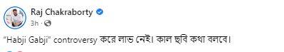 তবে সৃজিতের এই পোস্টের উত্তর দিয়েছেন রাজ চক্রবর্তী। জানিয়েছেন তিনি বিতর্কে যেতে চান না। রাজ লিখছেন, "হাবজি গাবজি বিতর্ক করে লাভ নেই। কাল ছবি কথা বলবে।" রাজের এই পোস্টও ভাইরাল হতে বেশি সময় লাগেনি। তবে এই পোস্ট দেখে নেটিজেন মনে করছেন, তা হলে কি দুই পরিতালকের মধ্যে এবার এই দুই ছবি নিয়ে তুমুল প্রতিদ্বন্দ্বিতা দেখা যাবে? তবে ছবি দুটি কেমন হল তার উত্তর কাল দর্শকই দেবেন।