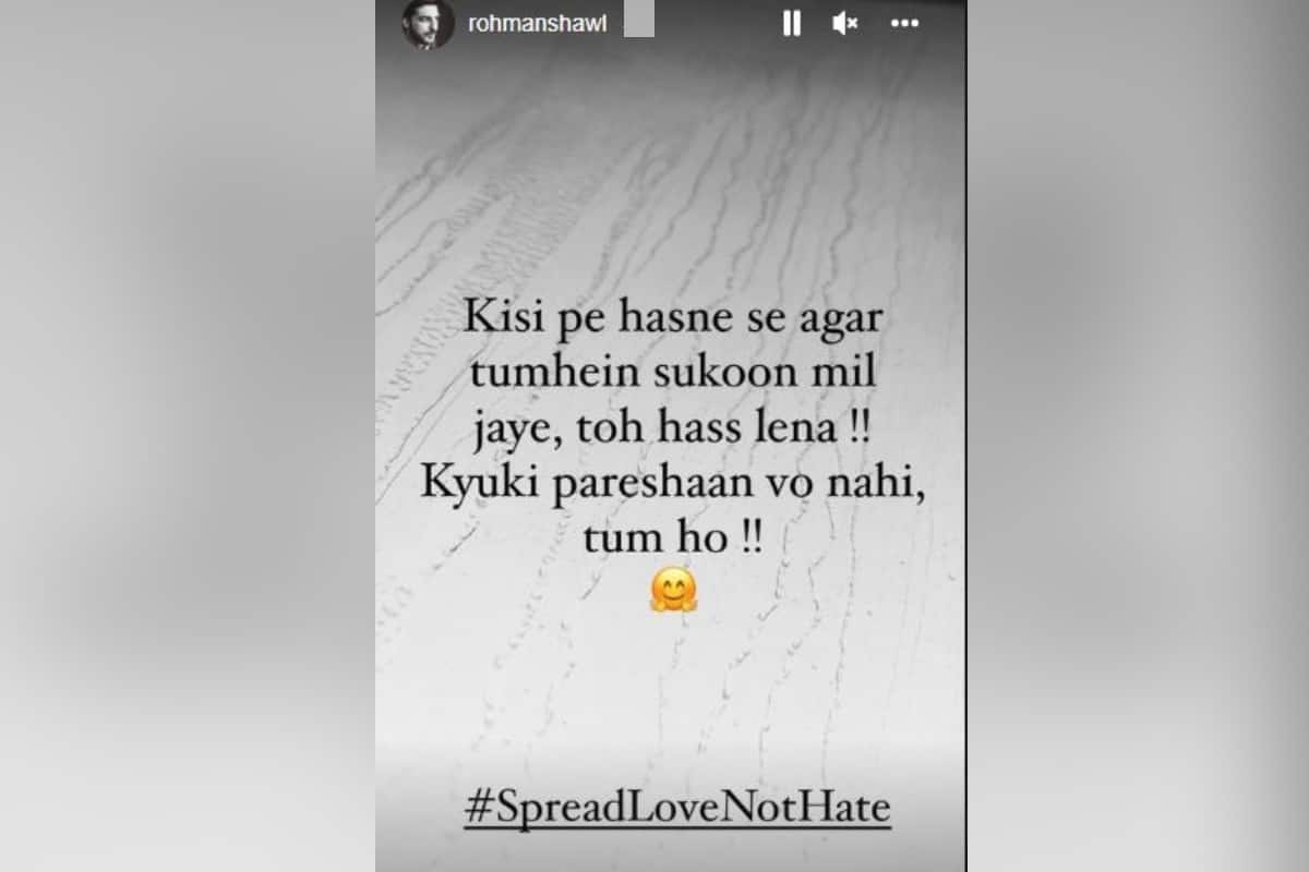 তার পর থেকেই চর্চা এবং ঠাট্টা, মস্করার শেষ নেই। মিম-শিল্পও শুরু হয়ে গিয়েছে ধীরে ধীরে। এমনই সময় মুখ খুললেন রোহমান। প্রথমত তিনি ইনস্টাগ্রামে স্টোরি দিয়ে লিখলেন, 'কাউকে নিয়ে হাসাহাসি করে যদি তুমি আরাম পাও, তো হেসে নাও। কিন্তু দুশ্চিন্তায় তুমিই আছো, ও নেই।'