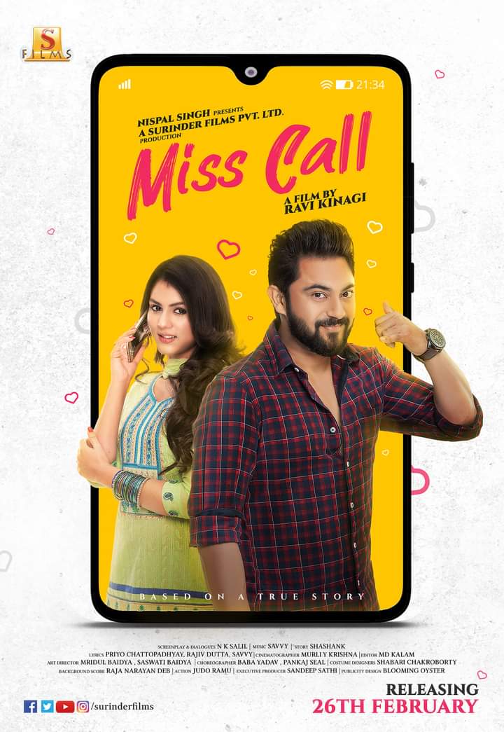 #কলকাতা: প্রেমের মাসে আসছে নতুন প্রেমের বাংলা ছবি 'মিস কল'। সুরিন্দর ফিল্মসের ব্যানারে প্রযোজিত এই ছবি প্রেমের গল্প হলেও আছে এক্কেবারে অন্য টুইস্ট। ছবির মুখ্য চরিত্রে সোহম -ঋত্ত্বিাকা। ছবির পরিচালনায় রবি কিনাগী।