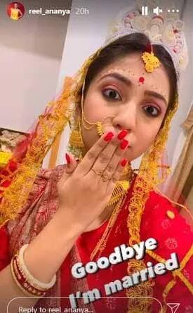 নিজের ব্রাইডাল লুকের ছবিও সে শেয়ার করেছে ইনস্টাগ্রামের স্টোরিতে । সেখানে দেখা যাচ্ছে, অনন্যা লাল টুকটুকে বেনারসী পরেছেন । মাথায় লাল চেলি । সিঁথিতে সিঁদুর । ১৮ বছর বয়স হওয়ার আগেই বিয়ে সেরে ফেলল অনন্যা ? এটাই এখন প্রশ্ন ভক্তদের মনে ।