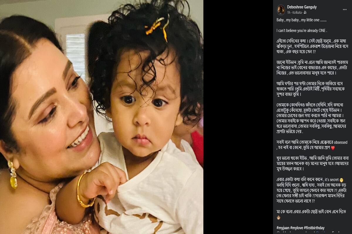 #কলকাতা: 'দিদি গুলো, ঋষি দাদা, সবাই তো অনেক বড় হয়ে গেছে, তুমি তাহলে খেলবে কার সাথে?? একটা তো খেলার সঙ্গী চাই নাকি?? সারাক্ষণ মামন দিদির সাথে খেলতে ভালো লাগে?? মা'কে বলো এ বারে একটা ছোট্ট ভাই, বোন এনে দিতে', ইউভানের (Yuvaan) জন্মদিনে তার সঙ্গে কানে কানে এই সিক্রেটই শেয়ার করেছেন একমাত্র মাসি অভিনেত্রী দেবশ্রী গাঙ্গুলি (Deboshree Ganguly)। দেখতে দেখতে বড় হয়ে গেল বিধায়ক তথা পরিচালক রাজ চক্রবর্তী (Raj Chakraborty) এবং অভিনেত্রী শুভশ্রী গঙ্গোপাধ্যায়ের (Subhashree Ganguly) একমাত্র সন্তান ইউভান (Yuvaan Chakraborty)৷ আজ তার ১ বছরের (Yuvaan Chakraborty turns 1 year) জন্মদিন৷ বিশেষ দিনটিতে আবেগে ভাসছেন অভিনেত্রী শুভশ্রী গাঙ্গুলির (Subhashree Ganguly) দিদি অভিনেত্রী দেবশ্রী গাঙ্গুলি।