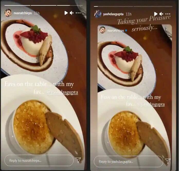 তবে আলাদা দুই রাজনৈতিক শিবিরের হয়ে প্রতিনিধিত্ব করলেও তাঁদের বন্ধুত্বের পথ এখনও একই রয়েছে । সে কথাই যেন আরও একবার প্রমাণ হয়ে গেল ডিনার টেবলে । দুই বিভিন্ন রাজনৈতিক মতাবলম্বী হয়েও একইসঙ্গে ডিনার ডেটে গেলেন যশ-নুসরত । তার প্রমাণও দিলেন সোশ্যাল মিডিয়ায় । ইনস্টা হ্যান্ডেলের স্টোরিতে নুসরত শেয়ার করলেন কিছু খাবারের ছবি । লিখলেন, ‘‘টেবিলে আমার ফেবারিট খাবার…আর সঙ্গে ফেবারিট যশ দাশগুপ্ত’’ । সেই স্টোরিটি আবার নিজের স্টোরিতে শেয়ার করে যশ লিখলেন, ‘‘তোমার তৃপ্তি আমি খুবই গুরুত্ব দিয়ে দেখছি ।’’