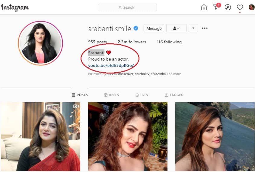 তবে এতদিন পর্যন্ত তাঁর ইনস্টাগ্রামের পাতায় জ্বলজ্বল করত শ্রাবন্তী সিং নামটি । সম্প্রতি সেটি বদলে শুধুই শ্রাবন্তী করে দিয়েছেন নায়িকা । পাশে রয়েছে লাল রঙের হৃদয়ের ইমোজি ।