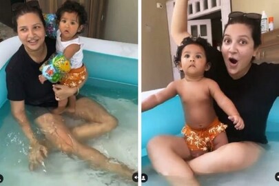 সামনে এল ইউভানের (Yuvaan Chakraborty) স্নানের ভিডিও । দেখা গেল খালি গায়ে, হলুদ ফ্লোরাল প্রিন্টেড শর্টস পরে, মা শুভশ্রীর (Subhashree Ganguly) সঙ্গে জলকেলিতে মত্ত সে ।