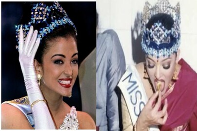 ছবিতে দেখা যাচ্ছেন, ঐশ্বর্য্যর পরনে লম্বা হাতা ব্রোকেটের ব্লাউজের সঙ্গে সরু সোনালি পাড় গাঢ় গোলাপি রঙের সিল্কের শাড়ি৷ হাতে, কানে, গলায় সোনালি গয়না৷ ‘মিস ওয়ার্ল্ডে’র স্যাশটাও শরীরে জড়ানো৷