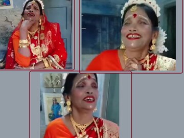 এভাবে জাকজমকালো সাজে রানু মণ্ডলকে দেখা গিয়েছে বেশ কয়েকটি ভিডিওতে৷ প্রথমে তিনি পরেছিলেন একটি লাল ছোপ ছোপ ম্যাক্সি৷ সেই ম্যক্সি ছেড়ে তিনি পরলেন লাল টুকটুকে বেনারসি শাড়ি৷ সঙ্গে সুন্দর করে মেকআপ করা হল তার৷ একেবারে যে ভাবে বিয়ের কনেদের সাজানো হয়, সেইভাবেই রানুকেও সাজানো হল৷ বাদ গেল না কপালের চন্দনও৷ এমনকি মাথায় শোলার মুকুটও পরলেন রানাঘাটের রানু মণ্ডল৷ মেকআপ শেষ হতেই একেবারে বউয়ের সাজে নজরে এল ভাইরাল রানু৷ কিন্তু কেন এভাবে সাজলেন তিনি৷