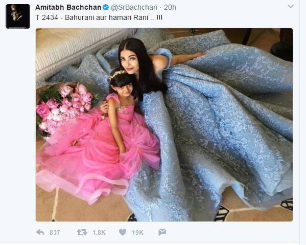 সেই ছবিটিই এবার নজরে পড়ল দাদু অমিতাভ বচ্চনের ৷ সোশ্যাল নেটওয়ার্কিংয়ে সদা ব্যস্ত বিগ বি, টুক করে সেই ছবি শেয়ার করলেন ট্যুইটারে, আর লিখলেন, ‘বহুরানি আর হামারি রানি...!’