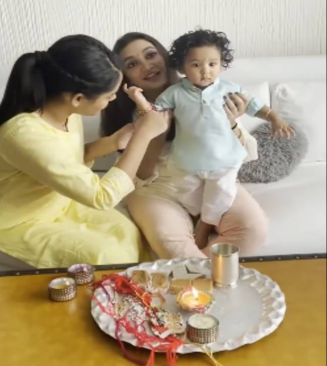 কলকাতা : হাল্কা আকাশি পাঞ্জাবী আর সাদা পায়জামা ৷ মায়ের কোলে বসে প্রথম বার রাখি পরল ছোট্ট ইউভান (Yuvan) ৷ কিছু না বুঝলেও খুদের আনন্দ দেখে কে! রাখিবন্ধন অনুষ্ঠানের ভিডিয়ো শেয়ার করেছেন শুভশ্রী (Subhashree Ganguly)৷ সেখানে ধরা পড়ে পারিবারিক মিলনোৎসবের ছবি ৷