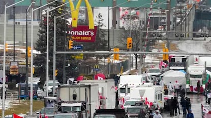 অ্যাম্বাসাডর ব্রিজ: উইন্ডসরে বিক্ষোভকারীরা মার্কিন যুক্তরাষ্ট্রে (USA) যাওয়ার অ্যাম্বাসেডর ব্রিজ সীমান্ত ক্রসিং (Ambassador Bridge Border Crossing) বন্ধ করে দিয়েছে। যার কারণে বিপুল ক্ষতি হচ্ছে ব্যবসায়। সেতুটি কানাডার অন্টারিও (Ontario) প্রদেশের উইন্ডসর (Windsor) ও যুক্তরাষ্ট্রের মিশিগান (Michigan) অঙ্গরাজ্যের ডেট্রয়টের মধ্যে। উইন্ডসরের (Windsor) মেয়র জানিয়েছেন, পুলিশ প্রয়োজনে বিক্ষোভকারীদের জোর করে ওই জায়গা থেকে সরিয়ে দেওয়ার প্রস্তুতি নিচ্ছে। সেতু দিয়েই দুই দেশের মধ্যে মোট বাণিজ্যের ২৫ শতাংশ হয়। এই সেতু দিয়ে প্রতিদিন ৩২৮ মিলিয়ন ডলার পণ্য পারাপার হয়। সেতুটি উভয় দেশের খাদ্য সরঞ্জামের পাশাপাশি অটো শিল্পের জন্য গুরুত্বপূর্ণ।