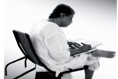 হিরণ মিত্রর আঁকা দেবেশ রায়ের প্রতিকৃতি।আমি এই নাটকের জন্য ৩০ টা প্রপ বানিয়েছলাম। এই ৩০টা প্রপের ৩০০ রকমের কাজে ব্যাবহার হত। তিস্তার কাজ কী ভাবে করেছি আগে কখনও লিখিনি। আজ বলি,আমি তিস্তায় পিছন থেকে সামনে এসেছিলাম। আমি প্রথমেই ব্যারেজটা ডিজাইন করেছিলাম। ওই ৩০ টা প্রপ ব্যবহার করেই ব্যারেজটা করা। শেষে এই ব্যারেজ দিয়ে বাঘারু হেঁটে চলে যায় বাচ্চাটাকে কাঁধে নিয়ে।