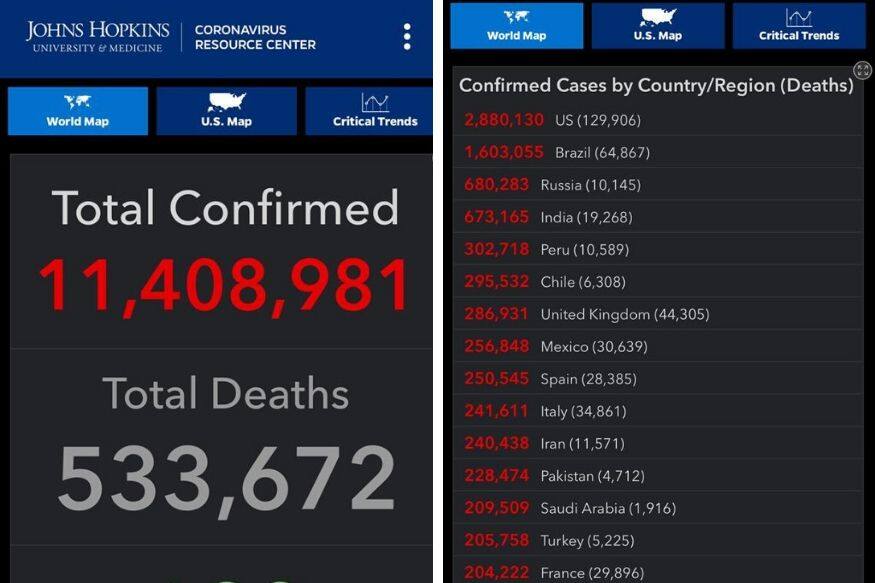 বিশ্বে করোনা আক্রান্তের সংখ্যা ১.১ কোটি ছড়াল, মৃতের সংখ্যা বেড়ে ৫,৩৫,৭৭৬