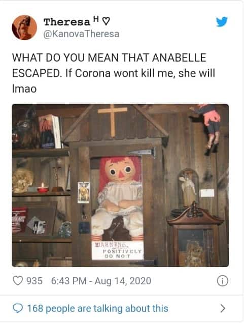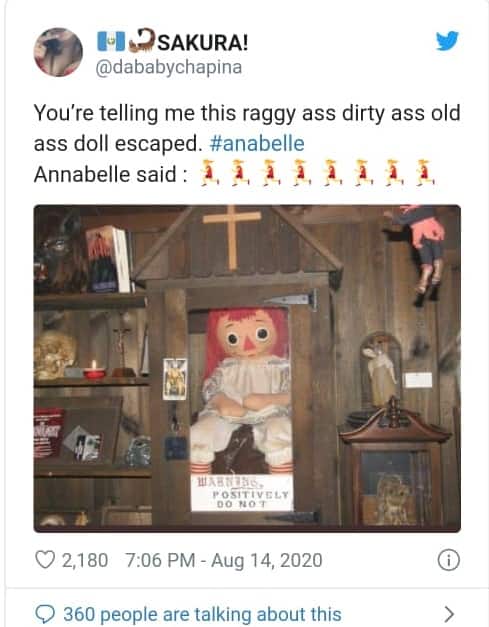এই পুতুলটিকে ঘিরে এক বা একাধিক এমন আধিভৌতিক ঘটনা ঘটেছে ৷ সবাই বিশ্বাস করতে শুরু করে অ্যানাবেল অভিশপ্ত ৷ এর পরই তাঁর স্থান হয় ওয়ারেন’স ওকাল্ট মিউজিয়ামের কাঁচের বাক্সে ৷ সেখানেও অভিশপ্ত পুতুল বলে অ্যানাবেলের পরিচয় দেওয়া হয় ৷ ১৪ অগাস্ট করোনা আবহে বন্ধ এই মিউজিয়ামের কাঁচের বাক্স থেকেই ভুতুড়ে পুতুলটি বেপাত্তা বলে খবর ছড়ায় ৷ মুহূর্তে সে খবর ভাইরাল নেটপাড়ায় ৷ কেউ কেউ আতঙ্কিত হয়ে পড়ে তো কেউ আবার মস্করা করে নানা মিম বানাতে থাকে ৷
