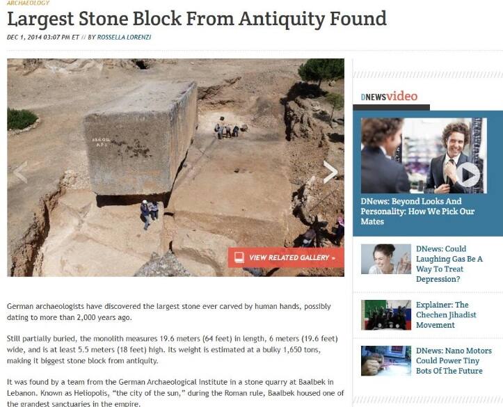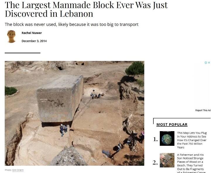 সবার প্রথম রিভার্স ইমেজ সার্চের মাধ্যমে খোঁজা হলে এই পাথরের আসল ও পূর্ণকায় ছবিটি Smithsonian Magazine-এর ওয়েবসাইটে খুঁজে পাই। ২০১৪ সালের ৩ ডিসেম্বর ছবি-সহ একটি ছোট প্রতিবেদন প্রকাশ করে লেখা হয় যে, এটি মানুষের তৈরি সবথেকে বড় পাথরের খণ্ডটি সবেমাত্র লেবাননে আবিষ্কার করা হয়েছে।