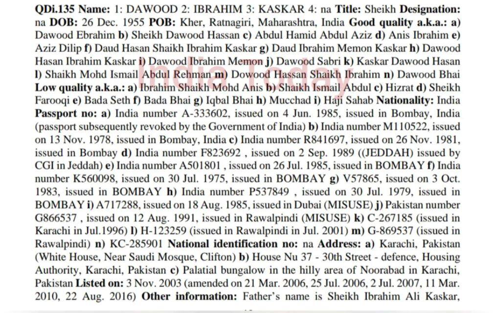 সরকার ১৮ ই আগস্ট দু'টি নোটিশ জারি করে, জইশ-ই-মহম্মদ প্রধান আজহার এবং আন্ডারওয়ার্ল্ড ডন ইব্রাহিমকে ২৬/১১ এর মুম্বই হামলার ষড়যন্ত্রকারী এবং জামায়াত-উদ-দাওয়ার মাস্টারমাইন্ডের বিরুদ্ধে নির্দেশিকা জারির কথা ঘোষণা করে। ১৯৯৩ সালের মুম্বই বোমা বিস্ফোরণের পরে দাউদ ভারতের পক্ষে মোস্ট ওয়ান্টেড টেরোরিস্ট হিসেবে চিহ্নিত হন৷