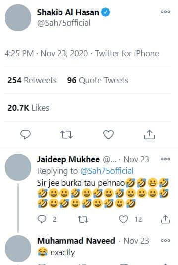 ‘স্ত্রী-কে বোরখা তো পরাও...’ ! এই ধরণের কমেন্টও করেছেন অনেকে ৷ কালীপুজোর উদ্বোধনে গিয়ে যেমন ক্ষমা চাইতে বাধ্য হয়েছিলেন সাকিব ৷ তেমনি এবার এই ছবির জন্যও তাঁকে ক্ষমা চাইবার দাবি করেন অনেকে ৷ সাকিবের ছবিতে নানাপ্রকার ব্যঙ্গ বিদ্রুপে ভরিয়ে দিয়েছেন নেটিজেনরা ৷