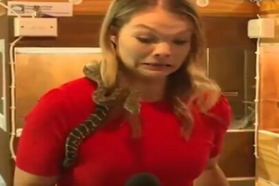 An Australian reporter screamed after a snake draped around her shoulders repeatedly struck at her microphone For more world news, head here: https://t.co/ykoGZFWgr8 pic.twitter.com/Npm6uYMG5i