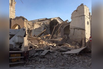 The Basilica of St. Benedict is destroyed, flattened by most recent earthquake. #Terremoto pic.twitter.com/GQDl64LhFn