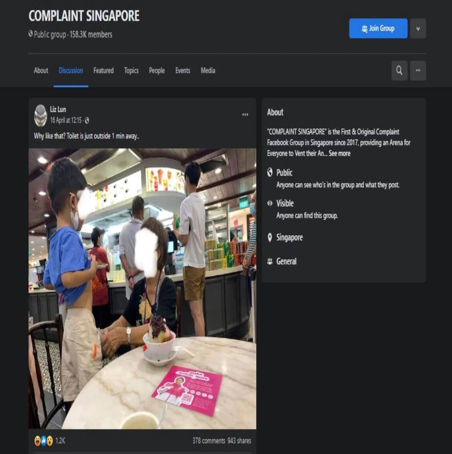 সম্প্রতি সিঙ্গাপুরেও এমনই এক ঘটনা সামনে এসেছে। কিন্তু সেই ঘটনাটি ঘটেছে সিঙ্গাপুরের এক মলের ফুডকোর্টে। আর এই ছবিই পোস্ট করা হয়েছে কমপ্লেন্ট সিঙ্গাপুর নামের এক পেজে আর ঘটনাটি শেয়ার করেছেন ওই পেজেরই সদস্য লিজ লান। তিনি ক্যাপশনে লিখেছেন, “এরকম কেন? ফুডকোর্টের বাইরেই তো শৌচাগার! যেতে মাত্র এক মিনিট লাগত।”