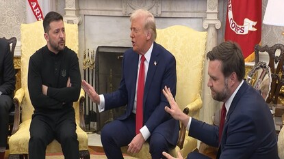 সম্প্রতি ওভাল অফিসে রীতিমতো বিবাদে জড়িয়ে পড়েন ট্রাম্প এবং জেলেনেস্কি। আন্তর্জাতিক রাজনীতিতে এমন ঘটনা বিরল। জেলেনেস্কির মুখের উপর ট্রাম্প বলে দেন, “আপনি তৃতীয় বিশ্বযুদ্ধ নিয়ে জুয়া খেলছেন।” তাঁর স্পষ্ট কথা, “আমেরিকা সামরিক সাহায্য না করলে দুই সপ্তাহও টিকতে পারত না ইউক্রেন।”
