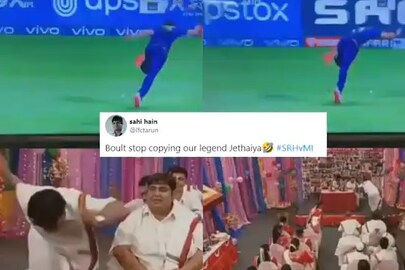 Boult stop copying our legend Jethaiya🤣 #SRHvMI pic.twitter.com/9q1FOWhV3b