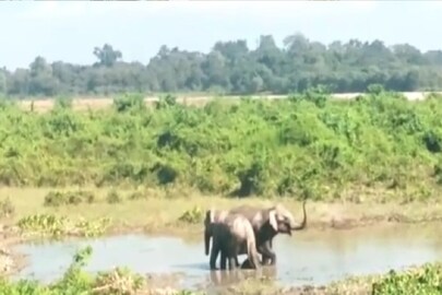 Viral Video|| রেললাইনের ধারে জলাশয়ে খেলছিল ২ বুনো হাতি! আদুরে ভিডিও মন ভাল করবে