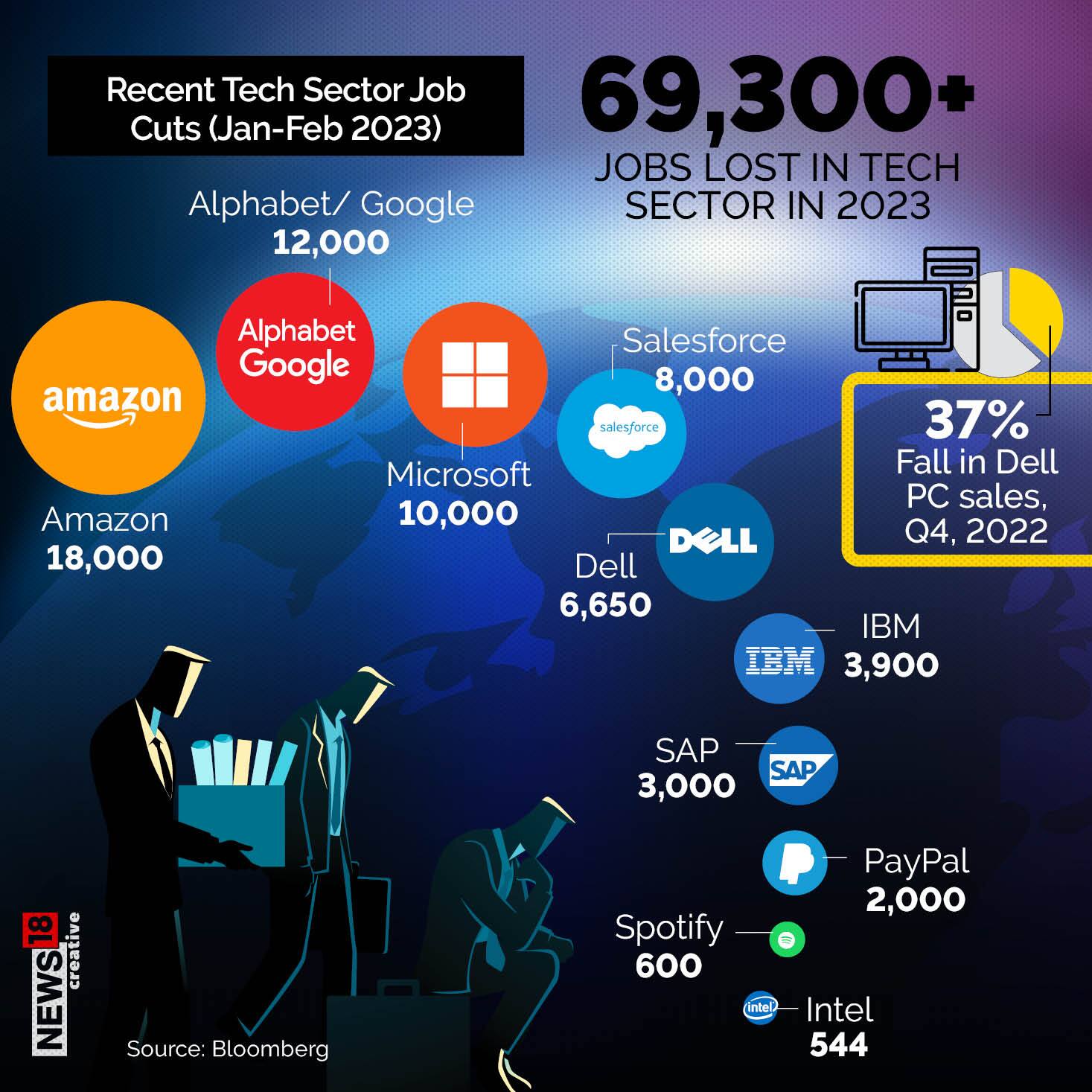 প্রযুক্তি কোম্পানিগুলোই সবচেয়ে বেশি কর্মী ছাঁটাই করছে। যা জানুয়ারিতে ঘোষিত সমস্ত কোম্পানির ছাঁটাইয়ের ৪১ শতাংশ। অ্যামাজন থেকে মেটা, অ্যালফাবেট থেকে গুগল, প্রায় প্রতিটা বড় প্রযুক্তি কোম্পানিতেই হাজার হাজার কর্মী কাজ হারিয়েছেন।