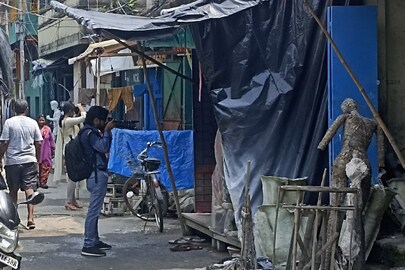 #কলকাতা: কারও চোখ খুঁজছে অসমাপ্ত দুর্গামূর্তির একটা "আর্টিস্টিক ফ্রেম", কারও অভিজ্ঞ চোখ আবার খুঁজছে মূর্তি তৈরির কারিগরের পরিশ্রমের টুকরো ছবি।